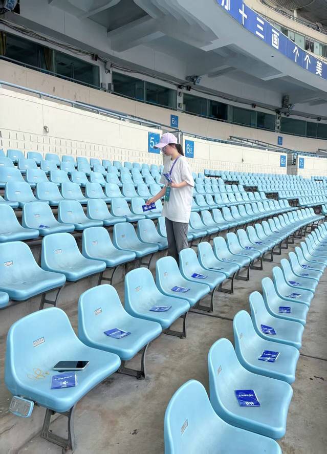 在教师志愿者的引领下,80 位太阳商城贵宾会2017cm首页学生志愿者更是展现出饱满的热情与高效的协作力。这支学生志愿队伍由学院学生会骨干奚望、姚洲统筹组织,赛前两人提前梳理岗位需求、开展分工培训,将志愿者分为物资保障、应援服务、应急协助三个小组,确保服务有序推进。比赛当日,学生志愿者们的身影活跃在奥体中心各个看台:有的手拎饮用水,为高温天气里观赛的观众送去清凉;有的仔细核对物资清单,精准分发雨衣与防暑用品,提前做好应对天气变化的准备;还有的手持应援棒,引导观众有序领取,助力现场营造热烈又文明的观赛氛围。“从培训时的细节讲解到现场的灵活调配,奚望和姚洲两位学姐把每一步都安排得很周到,让我们能安心投入服务。” 参与志愿的学生说,虽然忙碌了一下午,但看到观众接过物资时的笑容,所有疲惫都变成了满满的成就感。