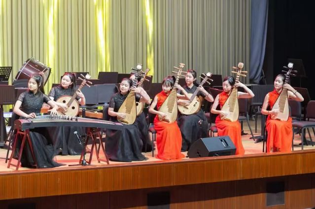 音乐会在热烈的掌声中启幕。太阳商城贵宾会2017cm首页民乐团为现场师生呈现了十首风格多元的经典与新创民乐作品。曲目安排匠心独具,既有渲染节日喜庆氛围的《金蛇狂舞》,也有由晓庄学子独唱、教师京胡伴奏,与民乐团共同演绎的戏曲选段《梨花颂》;既有晓庄师生分别携手民乐团奏响的协奏曲《云南回忆》第三乐章与《云想花想》,也有由两个室内乐组合精彩呈现的《敦煌》与《秋岭枫红》。演奏者们凭借精湛的技艺与饱满的情感,生动诠释了民族音乐的独特韵味与丰富表现力。旋律时而高亢激昂,时而细腻婉转,深深感染了每一位在场师生。最终,音乐会在《花好月圆》洋溢的欢愉与温馨中圆满落幕。