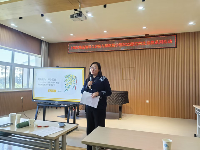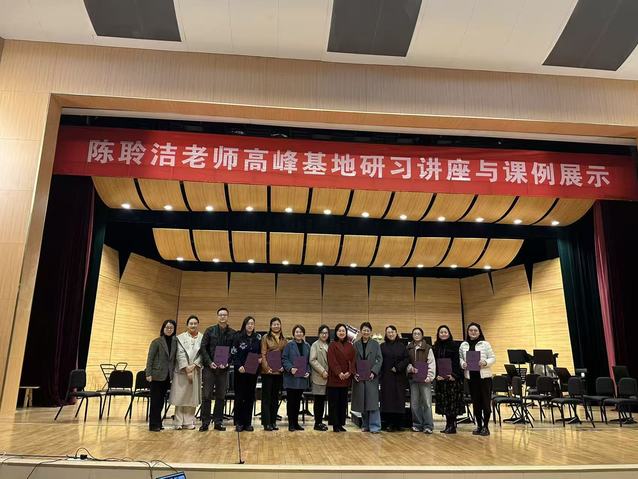 本次返校研习的一大亮点,是与上海市陈聆洁老师“高峰计划”团队的深度联动。作为上海市音乐教育领域的重要学术团队,陈聆洁团队长期专注于课程标准研究、课堂教学创新与评价改革,其“以课标为纲、以课堂为本、以学生为中心”的理念,与定向生“面向基层、立足课堂”的成长需求高度契合。本次活动中,陈聆洁高峰基地成员围绕七年级音乐单元教学与评价改革开展系列课例分享与专题讲座,从《盛世华章》的课堂结构设计,到《民歌飘香》的单元评价本土化实施,再到“理解课程标准、设计学习活动”“课例分析”等专题,引导定向生实现从“教教材”向“用课标教”的专业跃迁。这种“名师示范+现场研讨+对标反思”的研习模式,为定向生提前对接高水平教研平台、构建专业发展路径提供了重要支点。