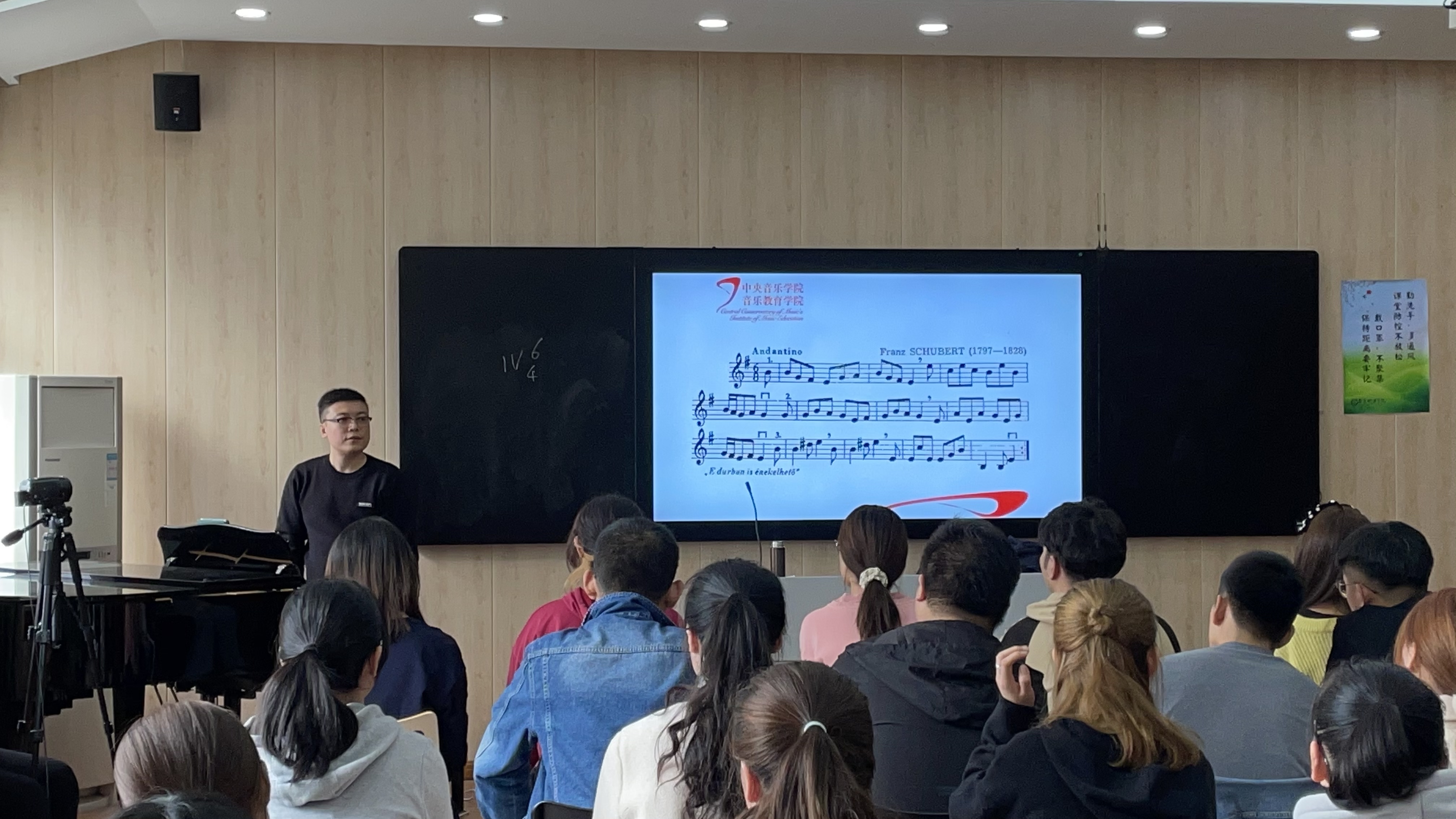 6日下午,张征教授以“音乐与钢琴即兴”为主题,将和声教学与钢琴即兴伴奏完美融合,以大量生动且富有感染力的歌曲创作案例与即兴演奏展现出多种和声进行的无限魅力。张教授幽默、睿智的讲学方式不时赢得在座师生的阵阵喝彩与掌声。其中,由张教授伴奏引领、在座师生共同完成的歌曲即兴创作更是将讲座的热烈气氛推向了高潮。讲座的最后,张教授还给大家介绍并欣赏了他创作的部分影视歌曲,其精湛的专业技能与深厚的音乐修养令人叹服。