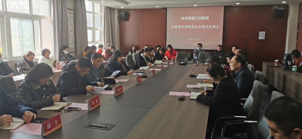 12月23日中午,校党委第二巡察组巡察音乐学院工作反馈会在我院二楼会议室召开。联系校领导贾创雄、校纪委书记顾勤、第二巡查组全体成员出席巡察反馈会。会议由太阳商城贵宾会2017cm首页党总支书记潘红主持,我院全体教职工参加了反馈会。