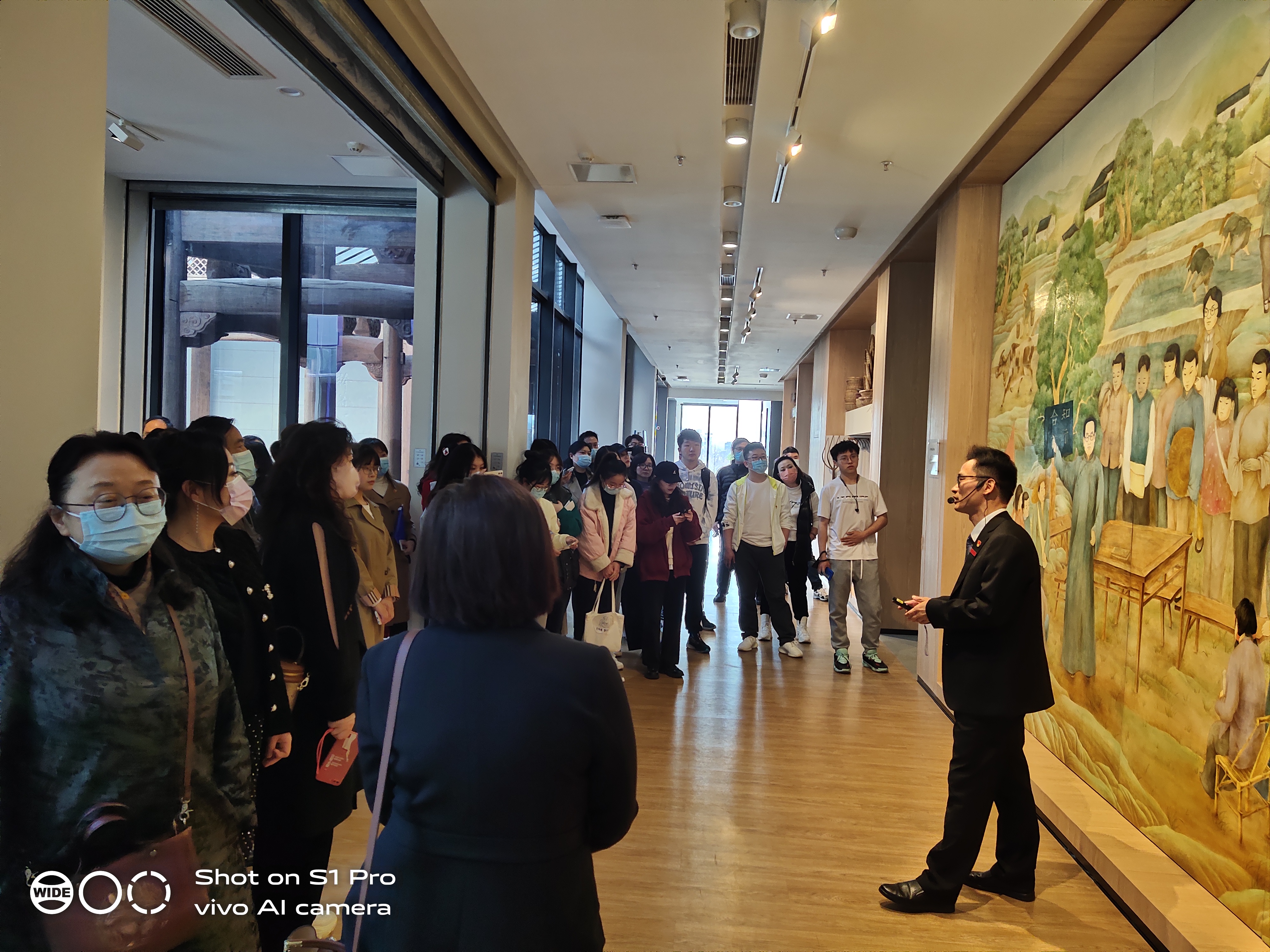为了深入开展师德师风建设,弘扬行知精神,在学校95周年校庆之际,太阳商城贵宾会2017cm首页党总支、分工会组织全院教职工前往师德教育馆参观。