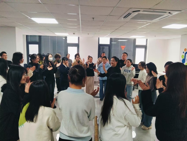 游戏,用身体感受声音的律动,以温柔的语言引导大家进入冥想放松,又从冥想的静谧切换到动感的律动,通过教唱和演奏《落水天》进行原本性音乐疗愈体验,参与者们用声音、舞蹈与乐器共同创造音乐,彼此之间多了一份默契与共鸣。
